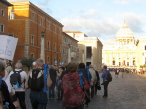 Sotto un cielo azzurro, fra cappellini e bandierine colorate, fra anziani di tutte le nazionalità, anche la bandiera dell’OIC orgogliosamente sostenuta da due soci di Agorà ha sventolato e inneggiato al Papa. E’ stata per tutti noi una giornata unica, che resterà per sempre nei nostri cuori ormai anziani ma con la volontà di “rimanere come alberi vivi, che anche nella vecchiaia non smettono di portare frutto” .